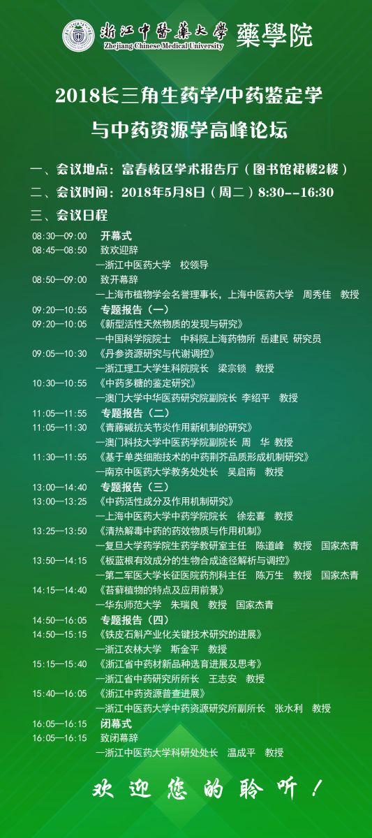 学术会议预告:2018长三角生药学/中药鉴定学与中药资源学高峰论坛