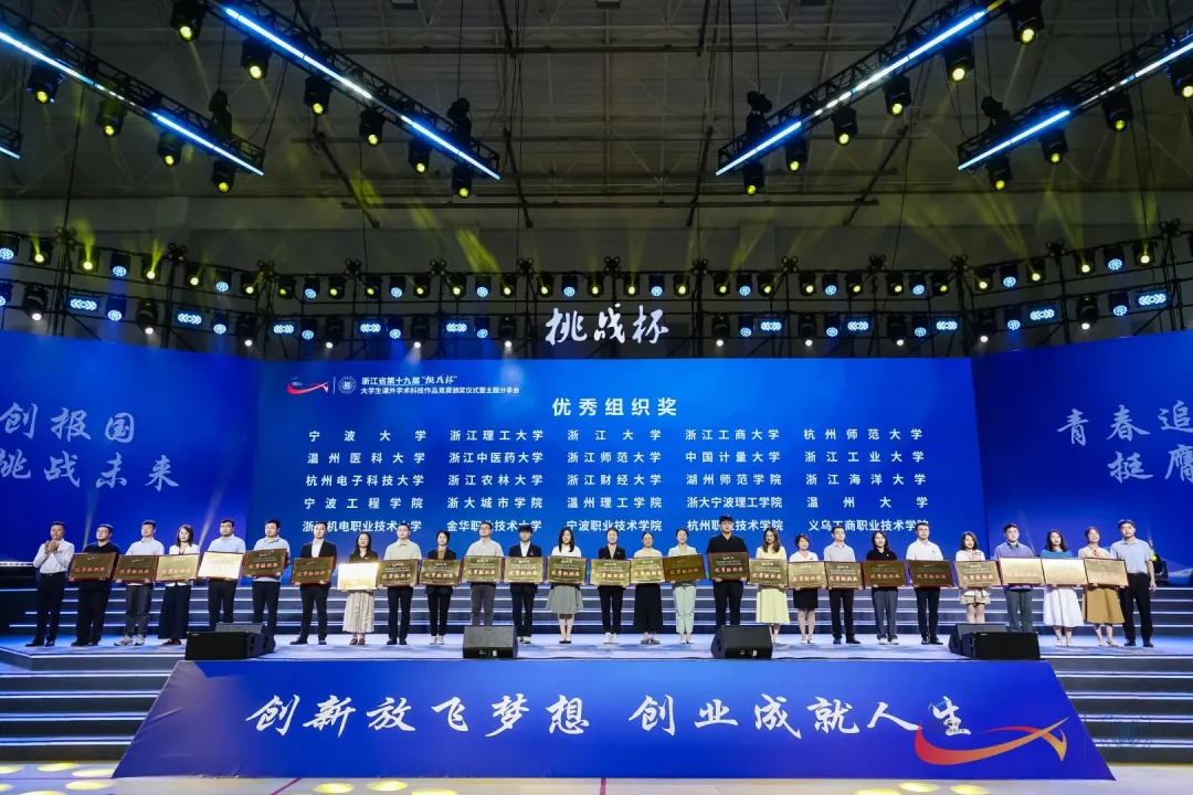 本届大赛最终评选产生金奖273项,其中主体赛208项、“红色专项赛”65项。浙江理工大学等15所学校荣获“优胜杯”,浙江大学等25所高校荣获“优秀组织奖”,杭州医学院等12所高校荣获“最佳进步奖”。